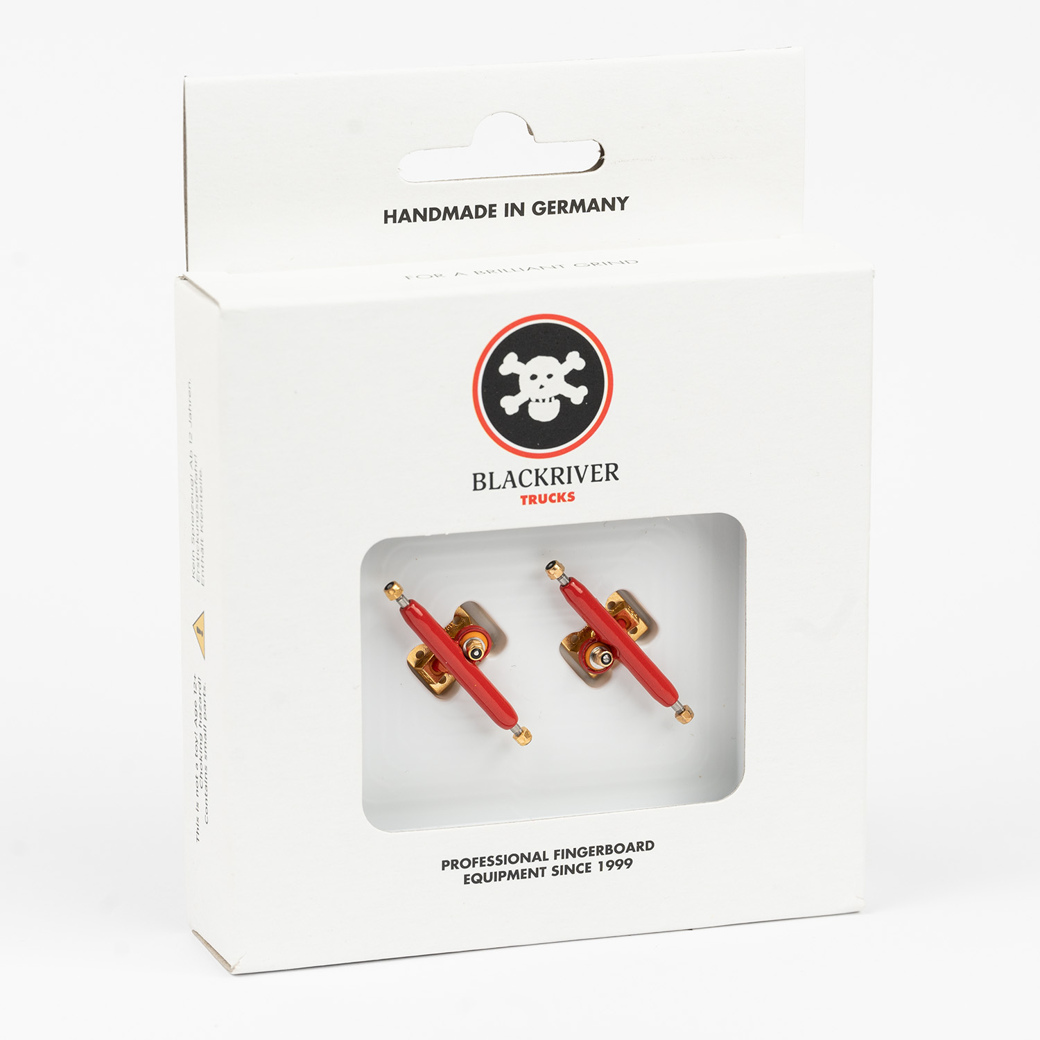 The original professional suspensions, improved and updated. Blackriver Trucks 3.0 features precise handling, great feel and true durability, just like skateboard suspensions, now enhanced with reinforced steel single axles, reinforced lock nuts and thicker reinforced base plates. …they also feature a Blackriver skull embossed on the base plate itself. Blackriver Trucks 3.0, available in 34 mm width, includes 8 mounting screws, 6 lock nuts and a Blackriver tool. Blackriver suspensions are designed, manufactured and assembled in Germany.